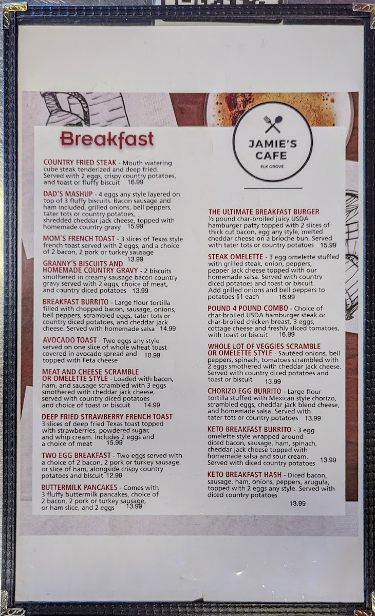 For those who love hearty portions, Jamie's Cafe won’t disappoint. Patrons have raved about the sizeable servings that ensure you’ll leave feeling completely satisfied. The prices are incredibly reasonable considering the generous sizing—just another reason that makes this cafe a beloved favorite in Elk Grove.